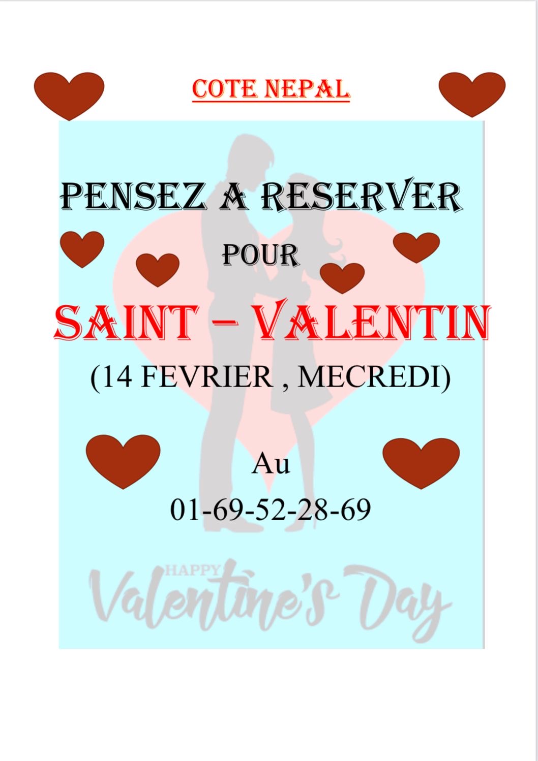 Bonjour Ewan En voyant votre commentaire nous avons controlé nos tablettes, et nous nous sommes aperçus que vous aviez raison ! Nous avons loué la salle pour un mariage, et nous avons prévenu tous nos clients qu’il ne fallait pas réserver ce Dimanche 29 Janvier…….sauf vous ! Je comprends donc parfaitement votre mécontentement. En conséquence, si vous revenez nous voir un midi avec une personne de votre choix, nous vous offrons 50% de remise sur les deux repas hors boissons. Le message est passé et nous vous attendons prochainement a une table de notre restaurant “Côté Népal”. A bientôt